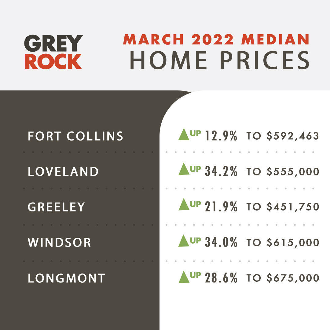 Denver did see a significant 15% increase in the number of listings on the market in March of 2022 compared with March of 2021. But Northern Colorado has not followed suit. In NoCo there were about 3,600 homes for sale in March 2022 compared with 4,000 in March of 21. A 10% decrease in listings below an already incredibly low level of inventory.